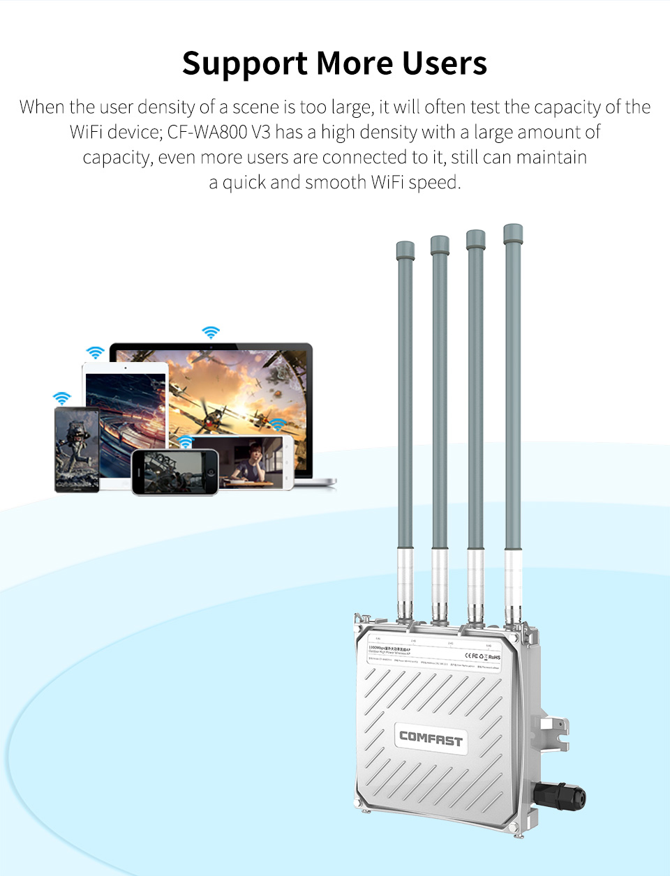 COMFAST CF-WA800 V3 1300Mbps Outdoor WiFi Wireless Base Station Signal Amplifier Repeater